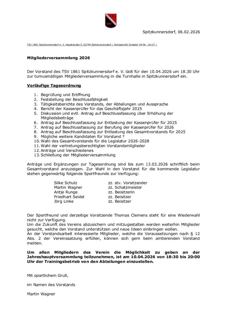 10.04 – Mitgliederversammlung 2026 – 18:30 Uhr – Turnhalle Spitzkunnersdorf –